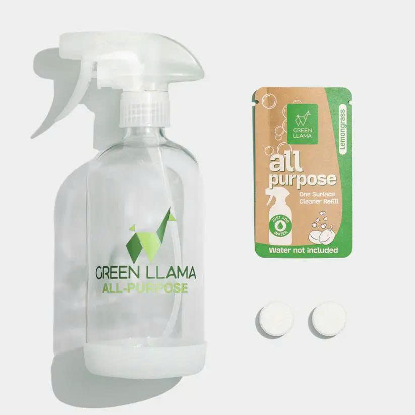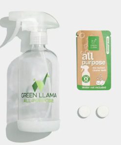 Bao gồm 3 chai thủy tinh có thể tái sử dụng với 1 viên chất tẩy rửa đa năng, 1 viên chất tẩy rửa phòng tắm và 1 viên chất tẩy rửa kính